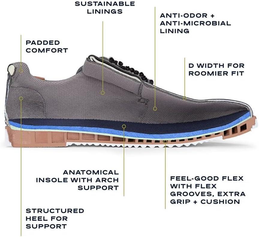 Sleek oxford shoes for men with versatility and feel-good comfort. SUSTAINABLY CRAFTED: Linings partially made from recycled plastic bottles, recycled toe box and heel counter. MATERIALS: Washed canvas fabric or faux leather. FIT: Lace up front with wax laces and padded collar and tongue for easy on/off. SUSTAINABLE COMFORT: Anti-odor Insole Technology with cushioning, comfort, & support. Insoles partially crafted with 15% cushy, algae-infused BLOOM® foam. MOVEMENT: Lightweight, flexible construction moves with you. STYLE: Lace up mens dress shoes with 1 inch sole. CONSCIOUSLY PACKAGED: This style is shipped in an environmentally preferred 1-piece box made with primarily recycled materials that can be recycled & soy-based inks. Amp up your look in on-the-go comfort shoes for the office, travel, airport, or wherever life takes you.