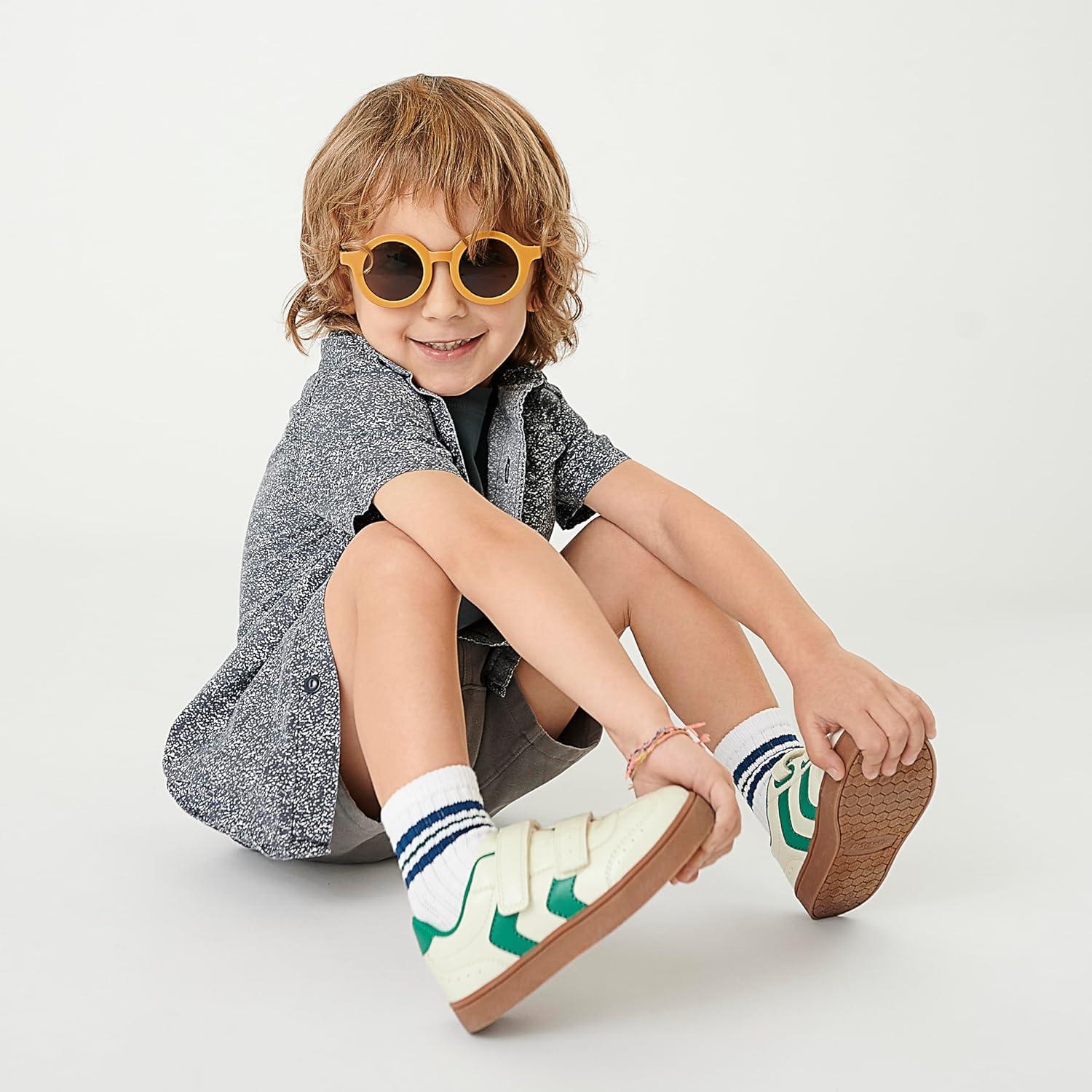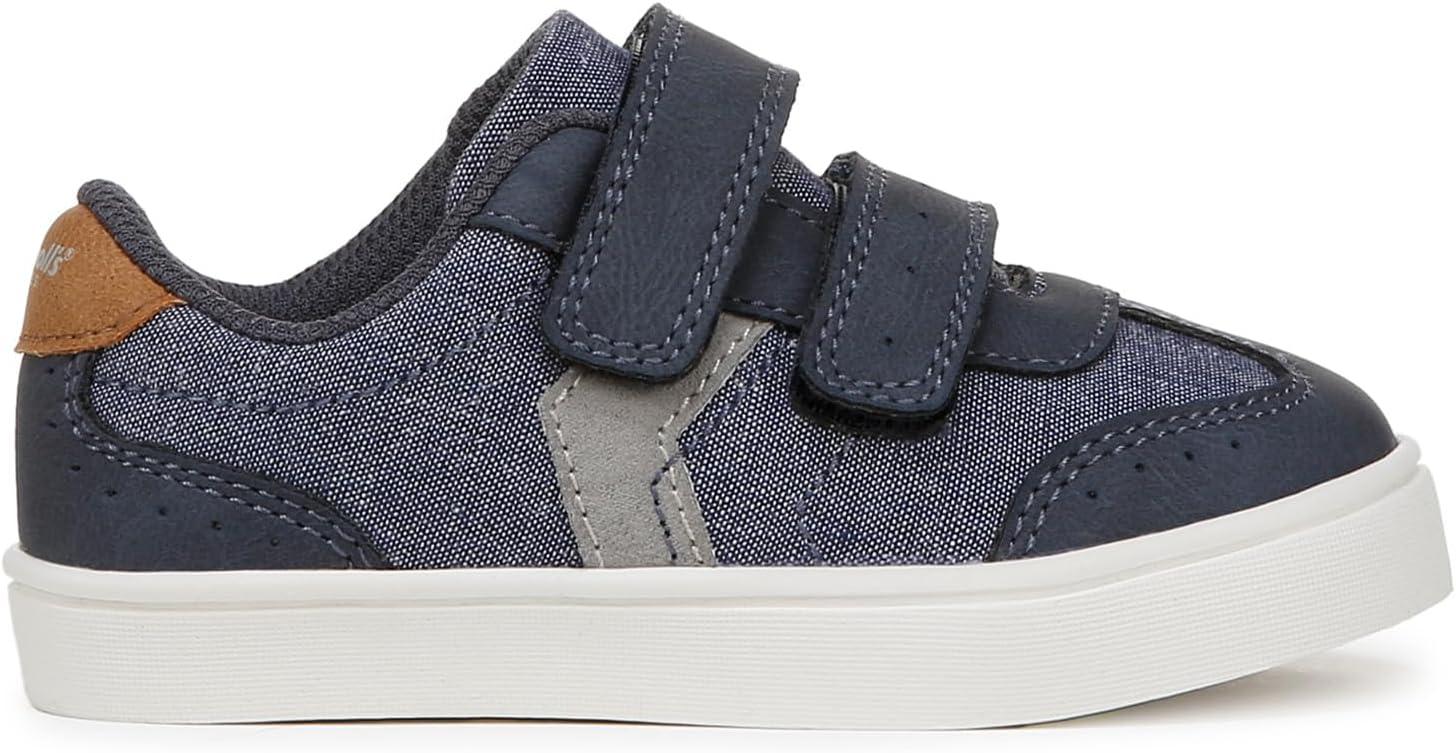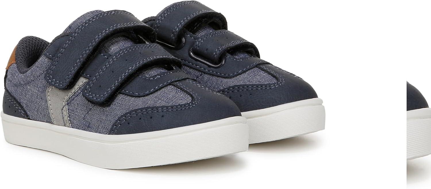 Our fan-fave sneakers made especially for your littles. MATERIALS: Faux leather or fabric upper, soft fabric lining, and TPR outsole. EASY CLEAN: Pre-treated with Easy Clean Repellant, a topical spray applied to the sidewall of the shoe only, to keep the sides of the shoe’s sole cleaner longer. Care instructions: use water (only) on a household cloth to wipe sidewall of shoe. Individual results may vary. FIT: Adjustable hook and look closure. FEELS: Comfort Insole Technology with cushioning, comfort & arch support. MOVEMENT: Lightweight, flexible construction moves with you. STYLE: Toddler tennis shoes with cute chevron details and dual hook and loop pull tab straps. These super-comfy toddler boy shoes and toddler girl shoes will be in daily rotation.