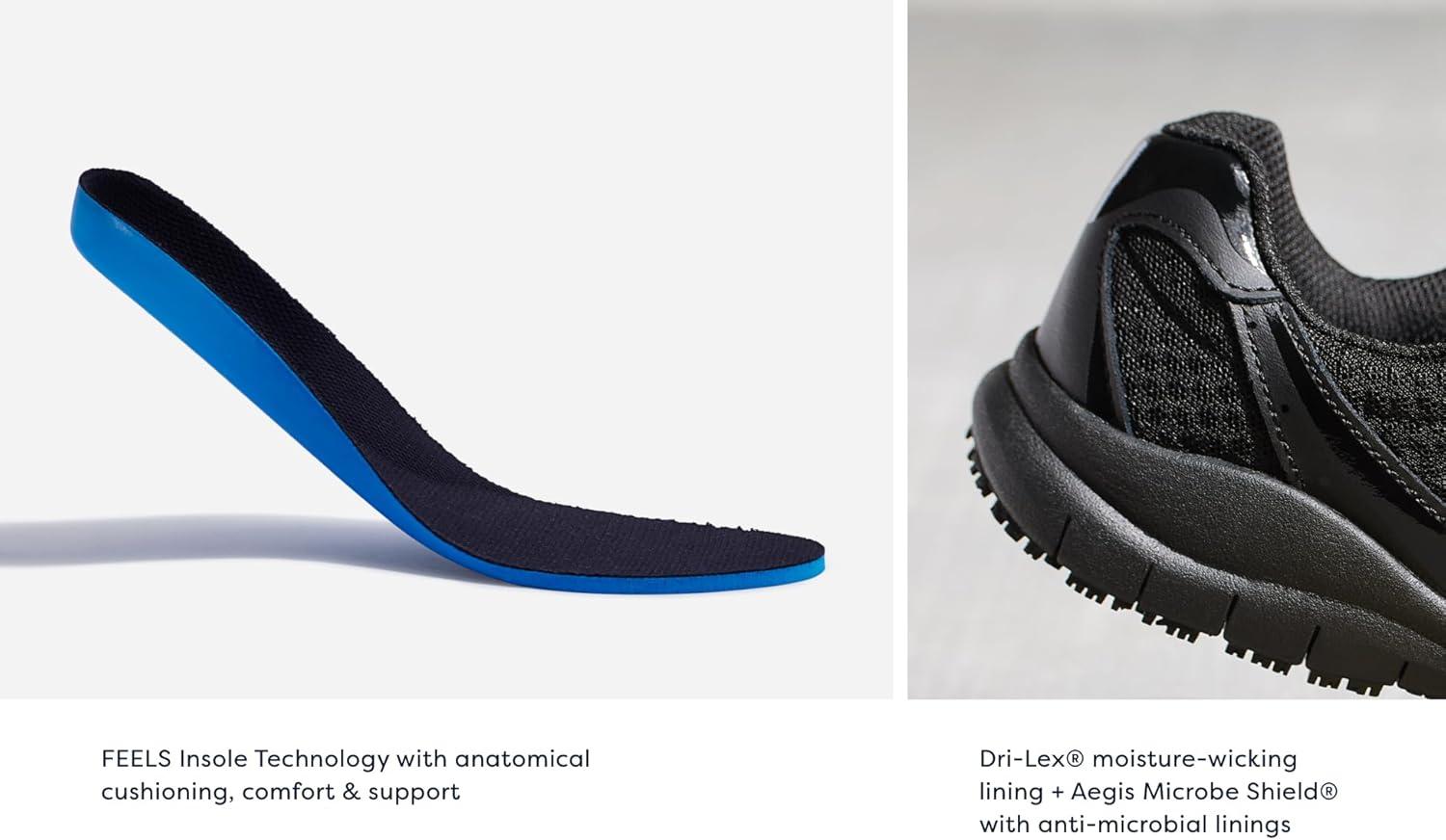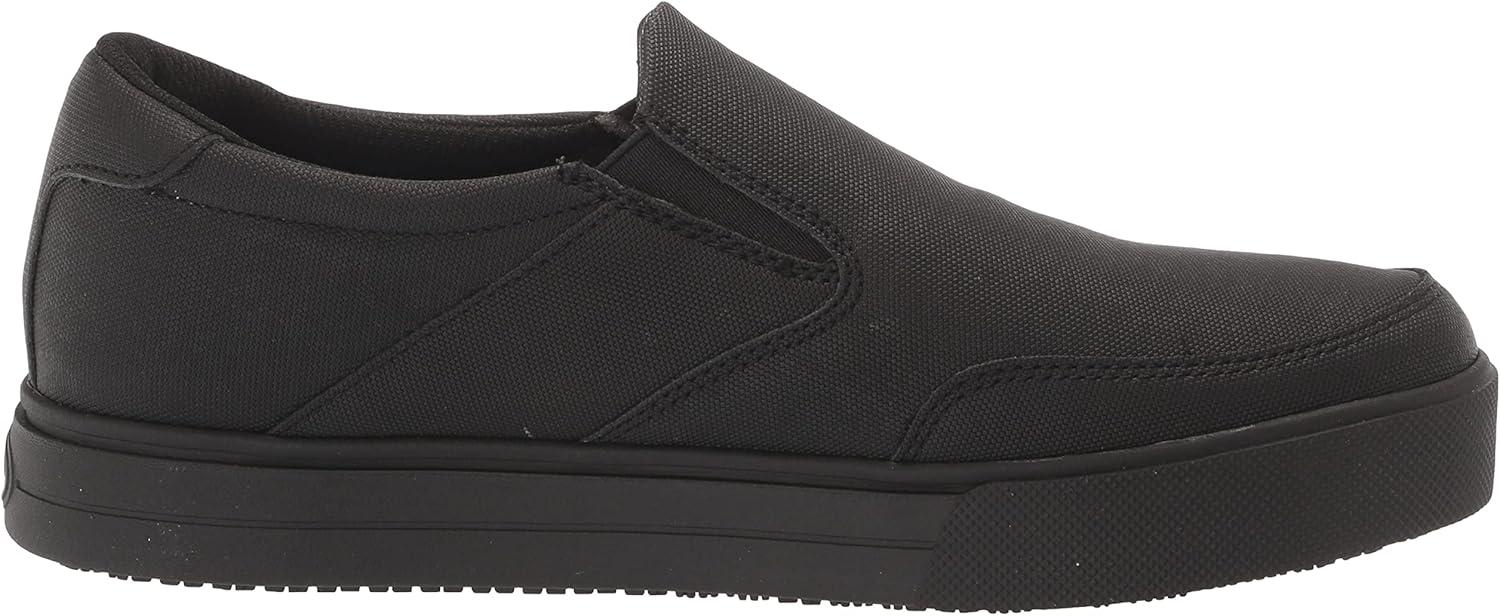 Slip-on work shoes for men that stay comfortable all day long. PERFORMANCE TESTED: In independent lab testing, our mens work shoes beat industry average for comfort and cushioning. Oil-resistant, slip-resistant Lock Step Outsole™ meets SATRA TM63 and TM144 standards. MATERIALS: Manmade upper. FIT: Slip-on fit for easy on/off. FEELS: Insole Technology with anatomical cushioning, comfort & support. MIDSOLE: Reduces foot pressure, absorbs shock, and moves with your foot. MOVEMENT: Lightweight construction with amazing flexibility. STYLE: Mens slip on shoes for work with non-marking rubber outsole.