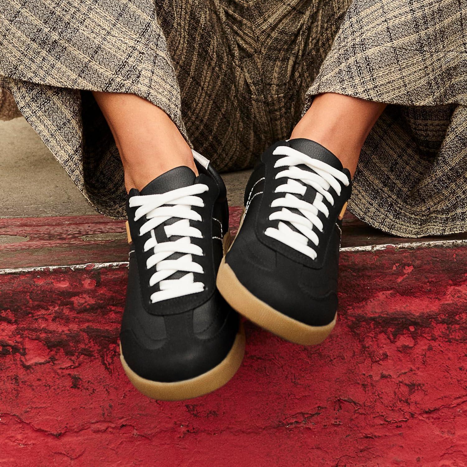 Retro-inspired womens lace up sneakers with true comfort. SUSTAINABLY CRAFTED: Linings and topcloth partially made from recycled plastic bottles; partially recycled toe box and heel counter. MATERIALS: Faux leather upper or microfiber partially made from recycled plastic bottles. FIT: Lace up closure for a secure fit. SHOELACES: Be True shoes in Blue Sky and White Oxide/Blue will ship with white laces and colorful laces for versatile styling. SUSTAINABLE COMFORT: Anti-microbial, anti-odor Insole Technology with cushioning, comfort, & arch support that uses 15% cushy plant-based BLOOM® foam insole. FEEL GOOD FLEX: Soft, lightweight outsole with built in flex grooves. STYLE: Low profile BAREFOOT tennis shoes featuring a wider toe box and zero drop to mimic the natural feel of walking barefoot, stitch detailing and 1 1/4 inch(es) sporty white sole or gum sole. CONSCIOUSLY PACKAGED: This style is shipped in an environmentally preferred 1-piece box made with primarily recycled materials that can be recycled & soy-based inks. Fashion tennis shoes with barefoot feels are the best walking shoes for vacay and everyday.