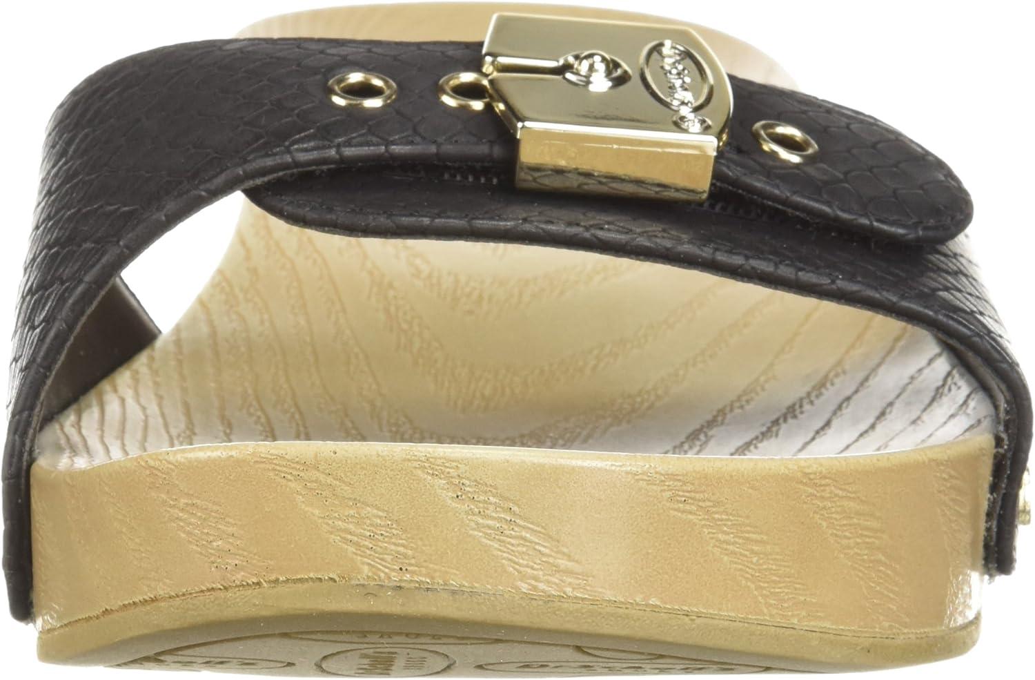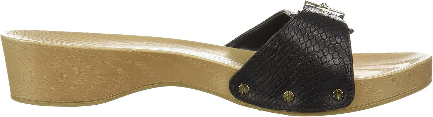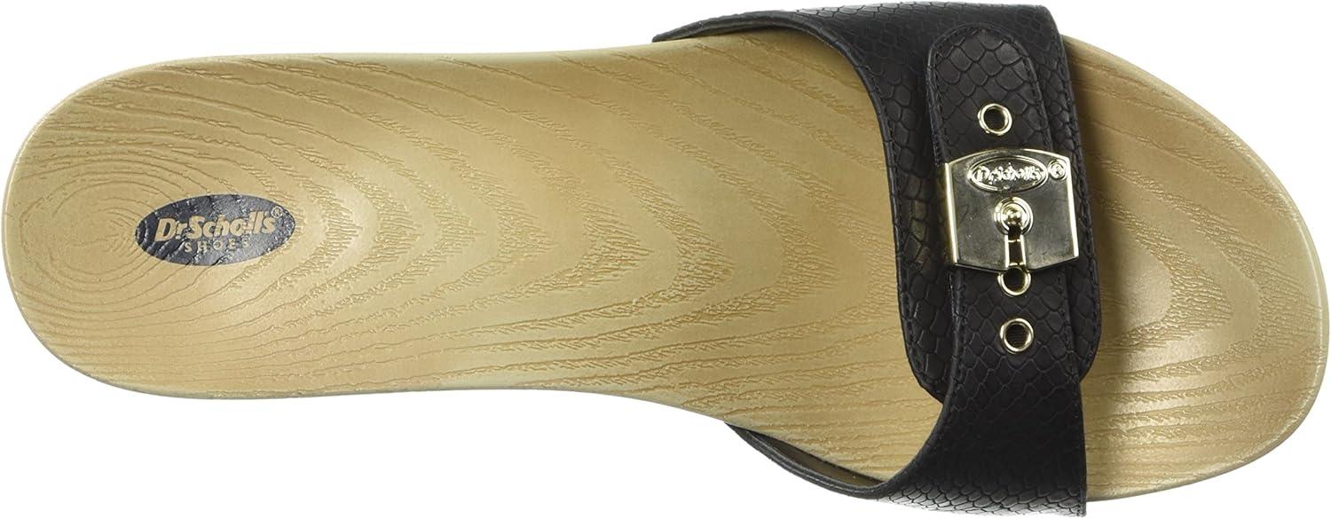 Dr. Scholl’s Shoes Women’s Classic Sandal Faux Wood Slide Sandal(Black Snake Print)