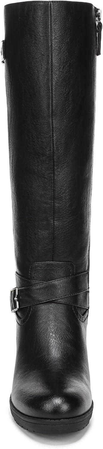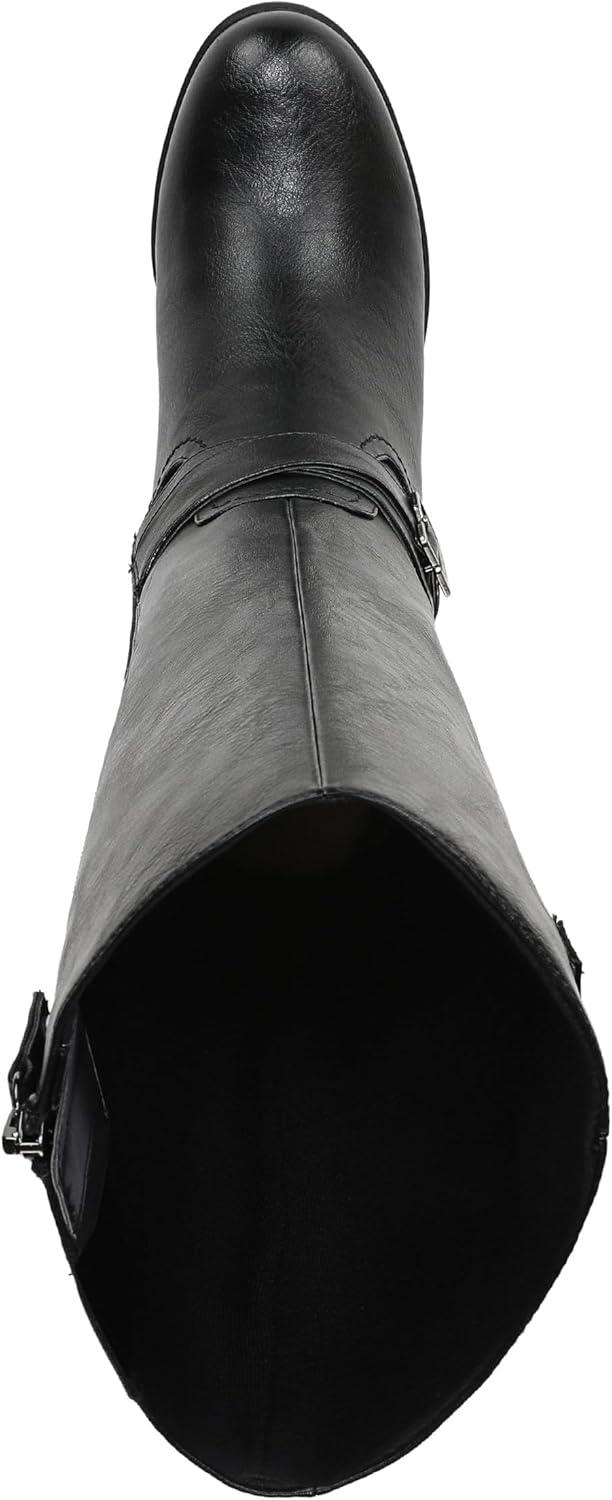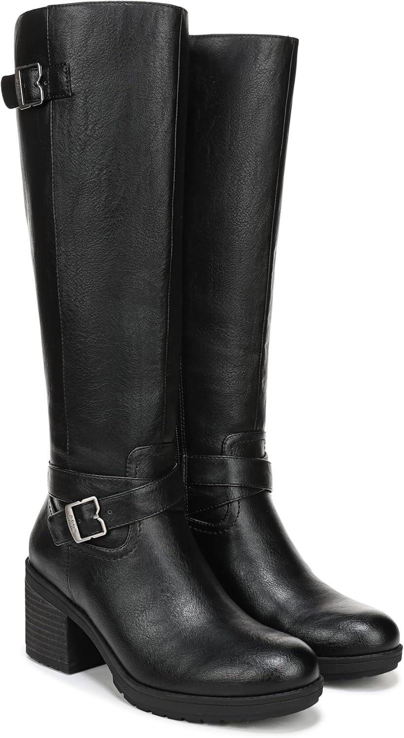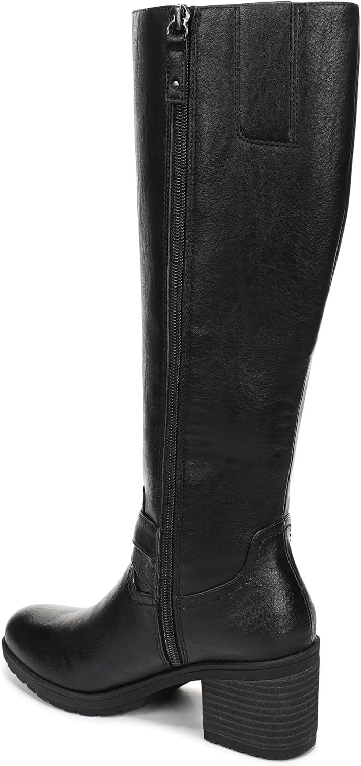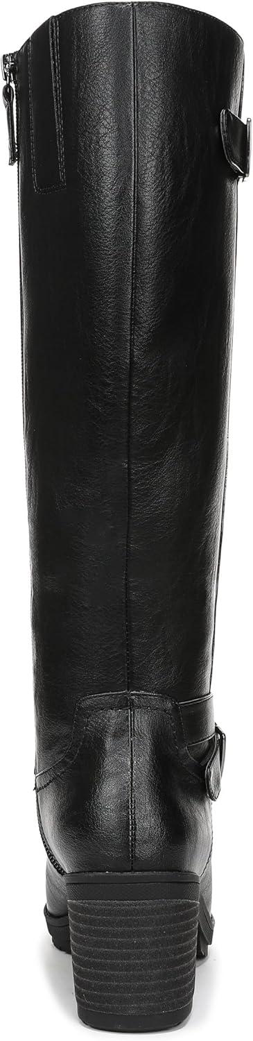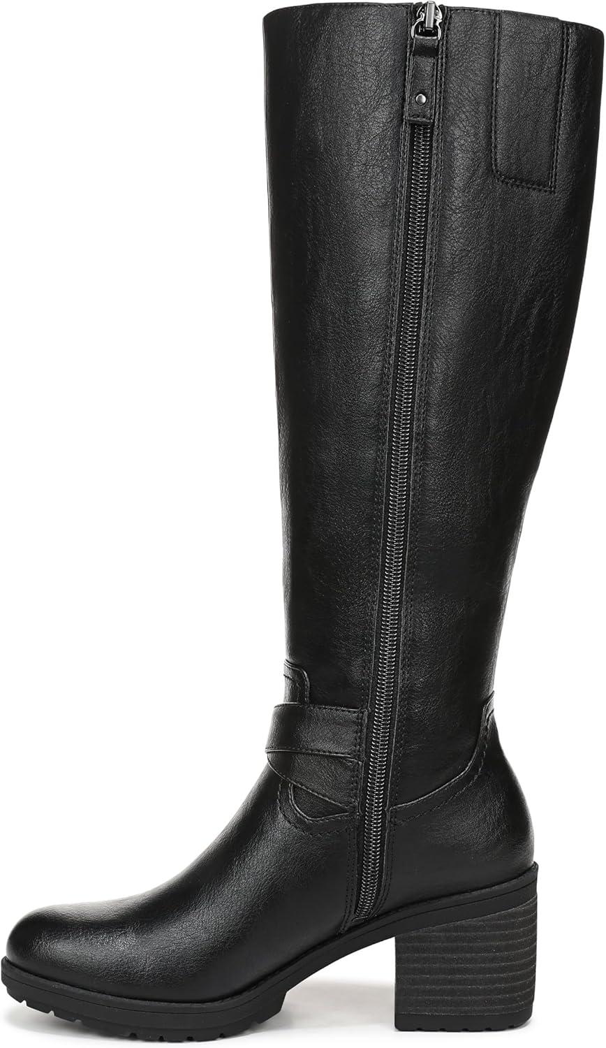Classic women’s knee high boots with a cool lug sole. SUSTAINABLY CRAFTED: Fabric lining and topcloth partially made from recycled plastic bottles. MATERIALS: Low chemical faux leather upper. FIT: Inside zip and hidden stretch gore for easy on/off. SUSTAINABLE COMFORT: Anti-microbial, anti-odor Insole Technology with cushioning, comfort, & support. Insoles partially crafted with 15% cushy, algae-infused BLOOM® foam. MOVEMENT: Lightweight, flexible construction moves with you. STYLE: Women’s boots with round toe, iconic buckle and strap detailing, stitch accents, and 2 3/4 inch stacked heel with TPR lug sole. CONSCIOUSLY PACKAGED: This style is shipped in an environmentally preferred 1-piece box made with primarily recycled materials that can be recycled & soy-based inks. As moto boots or riding boots, these tall boots will quicky become your best walking shoes for every outfit.