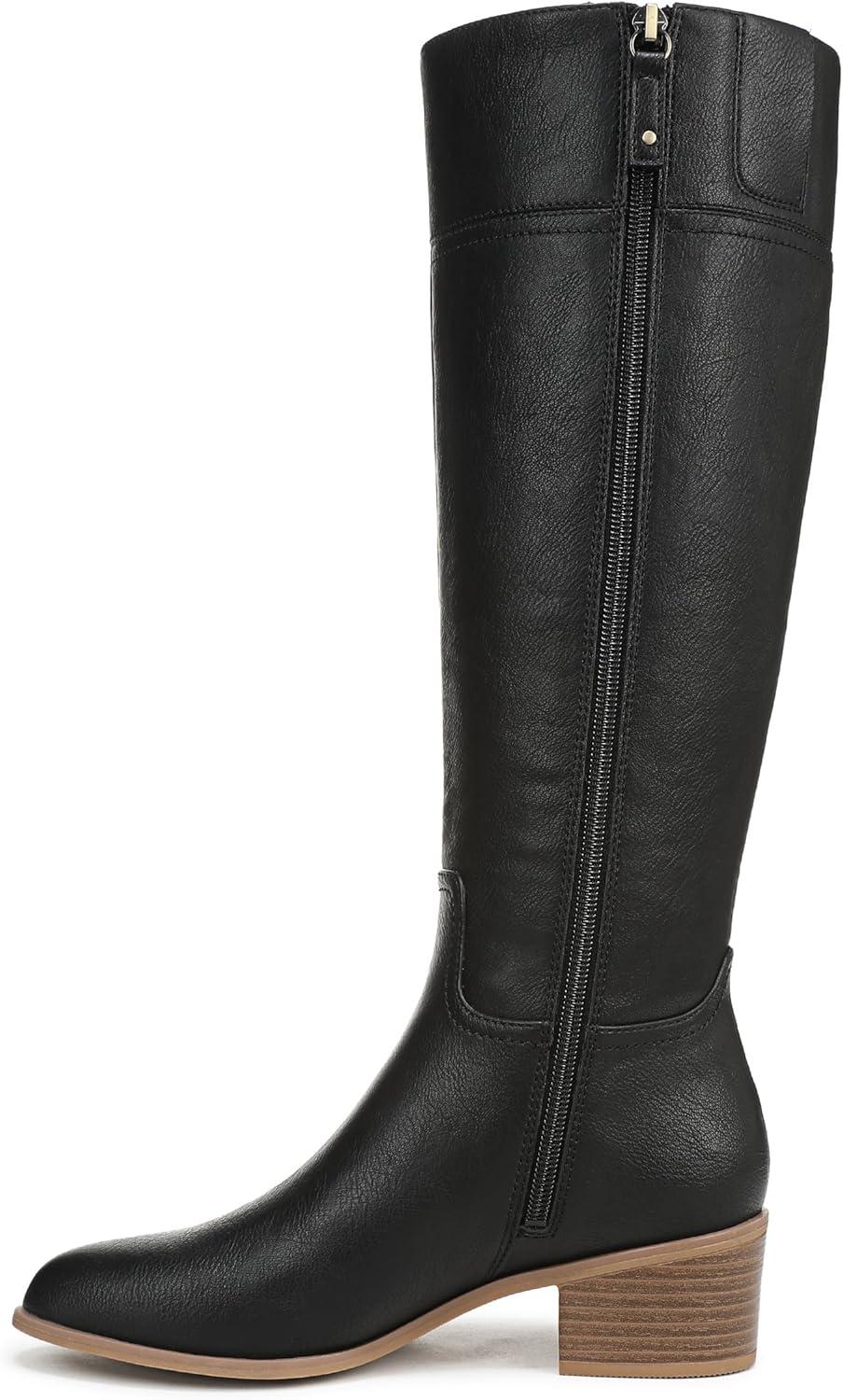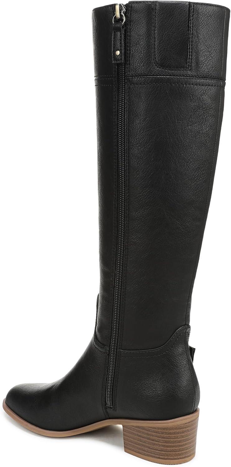 Riding boots for women designed with innovative comfort. SUSTAINABLY CRAFTED: Fabric linings and topcloth partially made from recycled plastic bottles; partially recycled toe box and heel counter. MATERIALS: Faux leather upper or microfiber upper partially made from recycled plastic bottles. FIT: Inside zipper for secure fit. FEELS: Anti-microbial, anti-odor Insole Technology with cushioning, comfort, & support. STYLE: Knee high boots with iconic buckle detailing, stitch accents, and 2 inch stacked heel and TPR outsole. CONSCIOUSLY PACKAGED: This style is shipped in an environmentally preferred 1-piece box made with primarily recycled materials that can be recycled & soy-based inks. With classic design and feel-good comfort, these tall shaft boots will elevate countless outfits.
