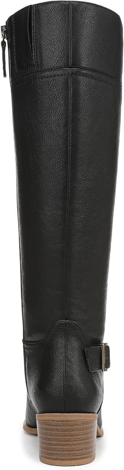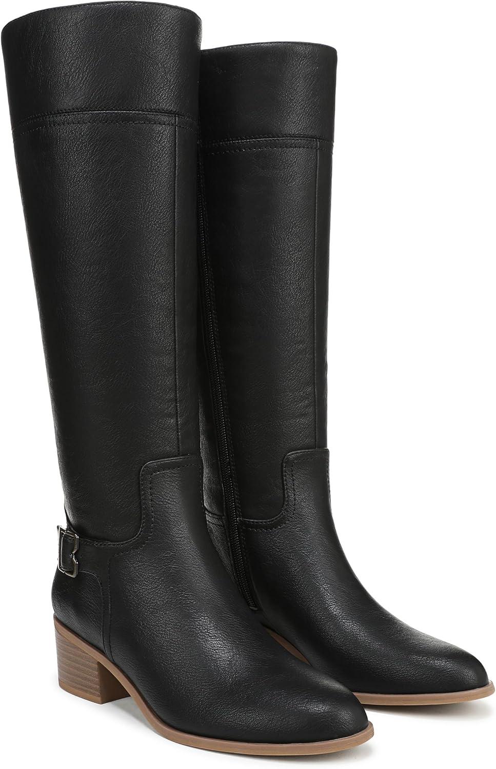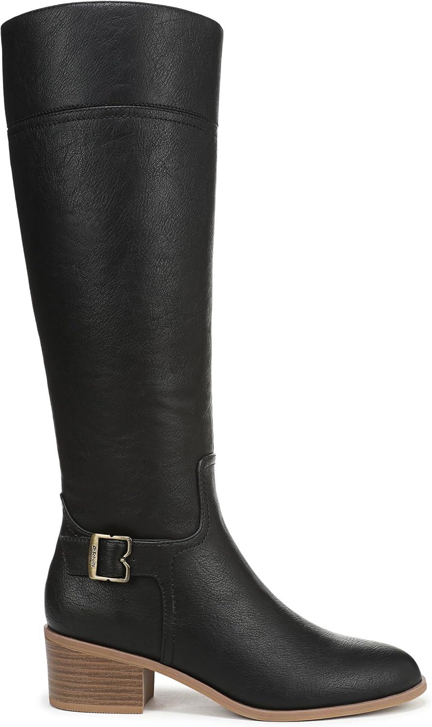 Riding boots for women designed with innovative comfort. SUSTAINABLY CRAFTED: Fabric linings and topcloth partially made from recycled plastic bottles; partially recycled toe box and heel counter. MATERIALS: Faux leather upper or microfiber upper partially made from recycled plastic bottles. FIT: Inside zipper for secure fit. FEELS: Anti-microbial, anti-odor Insole Technology with cushioning, comfort, & support. STYLE: Knee high boots with iconic buckle detailing, stitch accents, and 2 inch stacked heel and TPR outsole. CONSCIOUSLY PACKAGED: This style is shipped in an environmentally preferred 1-piece box made with primarily recycled materials that can be recycled & soy-based inks. With classic design and feel-good comfort, these tall shaft boots will elevate countless outfits.