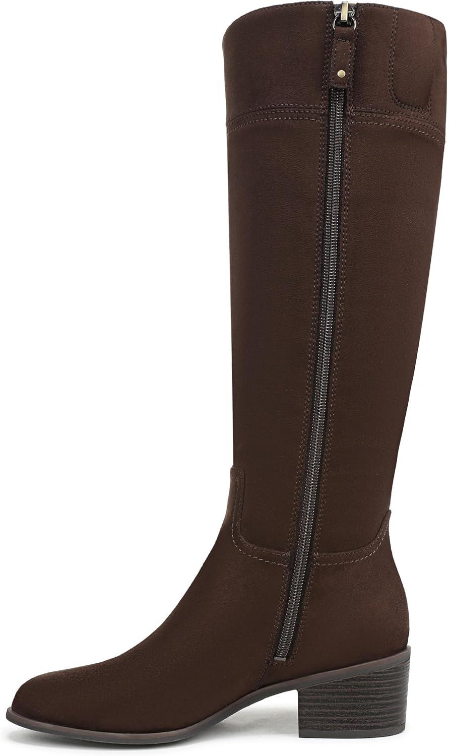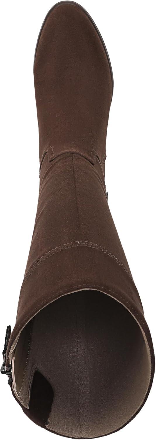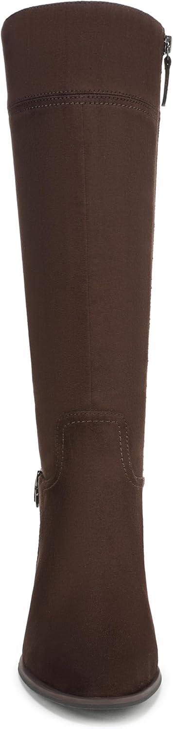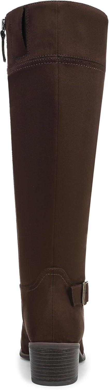 Riding boots for women designed with innovative comfort. SUSTAINABLY CRAFTED: Fabric linings and topcloth partially made from recycled plastic bottles; partially recycled toe box and heel counter. MATERIALS: Faux leather upper or microfiber upper partially made from recycled plastic bottles. FIT: Inside zipper for secure fit. FEELS: Anti-microbial, anti-odor Insole Technology with cushioning, comfort, & support. STYLE: Knee high boots with iconic buckle detailing, stitch accents, and 2 inch stacked heel and TPR outsole. CONSCIOUSLY PACKAGED: This style is shipped in an environmentally preferred 1-piece box made with primarily recycled materials that can be recycled & soy-based inks. With classic design and feel-good comfort, these tall shaft boots will elevate countless outfits.