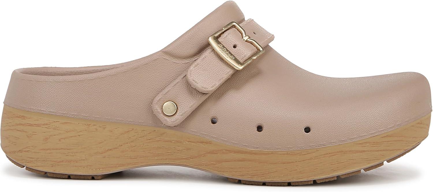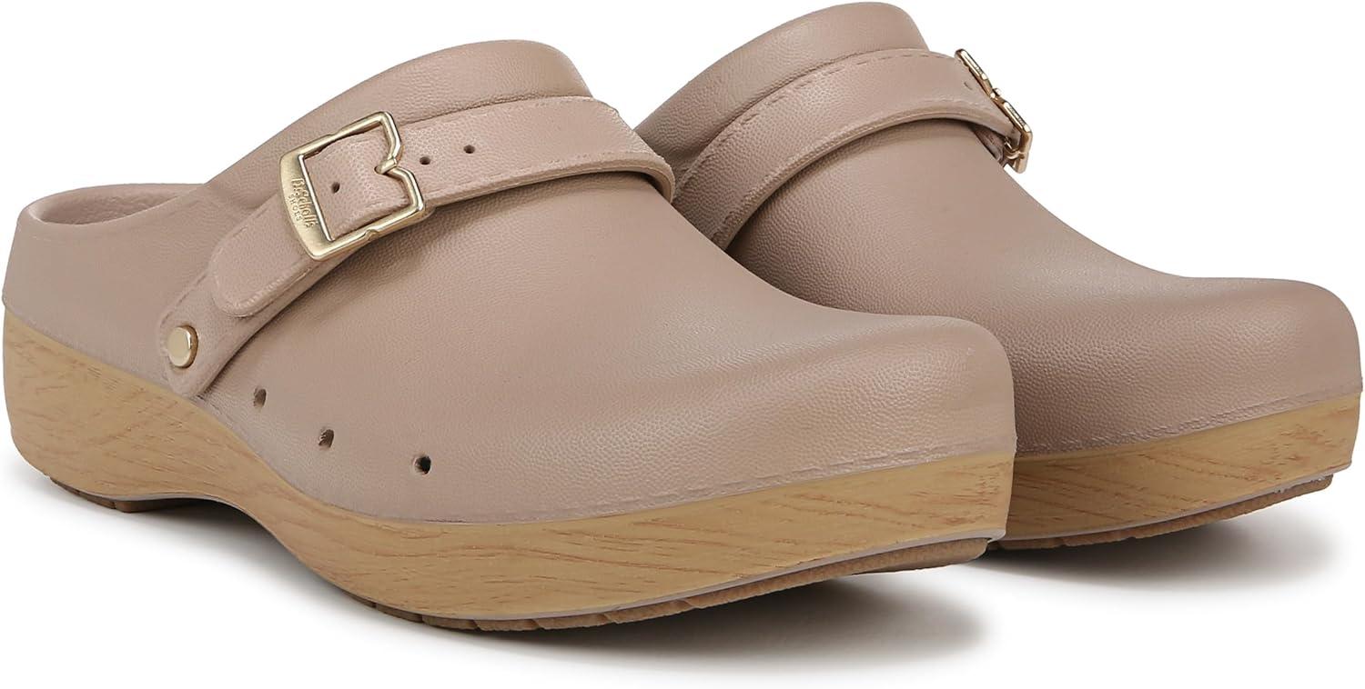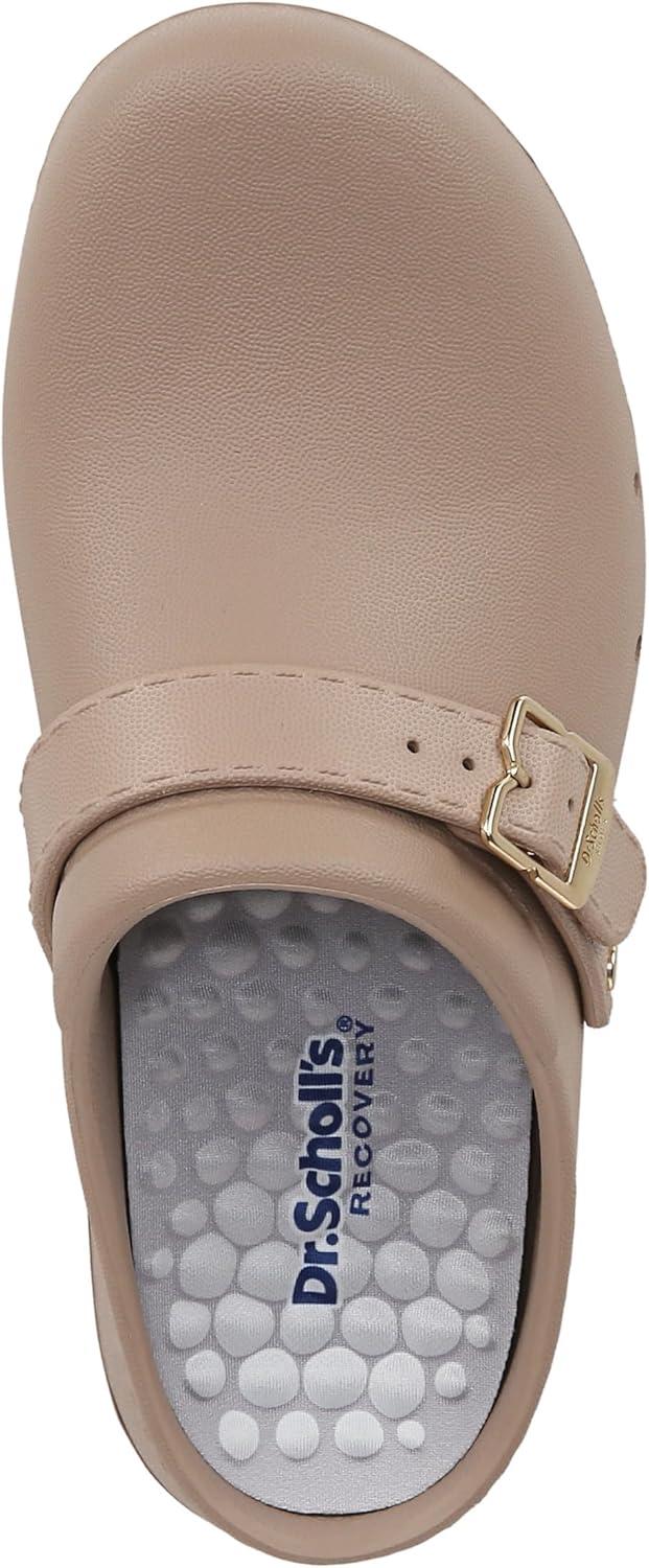 Recovery shoes for women with podiatrist recommended, built-in advanced insole technology that rejuvenates sore or tired feet. REVITALIZE™ RECOVERY INSERT: Built-in insert specially designed with targeted stimulating bubbles to help your feet recover faster, improve blood circulation in the feet, and reduce fatigue to help prevent muscle soreness in your feet and lower body. MATERIALS: Soft, easy-to-clean molded EVA upper and cushy EVA midsole for soothing pain relief and recovery. FIT: Slips on for easy on/off with decorative adjustable buckle detail for secure fit. COMFORT: Anti-microbial, anti-odor topcloth with cushioning, comfort, & arch support. MOVEMENT: Lightweight, flexible construction, traction rubber outsole to move with you, plus rocker-type toe spring for natural walking stride. STYLE: Womens clogs with iconic buckle detail, padded instep, REVITALIZE™ RECOVERY INSERT built into anatomical footbed, and 1 1/3 inch heel. CONSCIOUSLY PACKAGED: This style is shipped in an environmentally preferred 1-piece box made with primarily recycled materials that can be recycled & soy-based inks. Your feet will say “ahhh. ” With an insole that feels like a foot massage with every step, our iconic clogs are now your best recovery shoes.