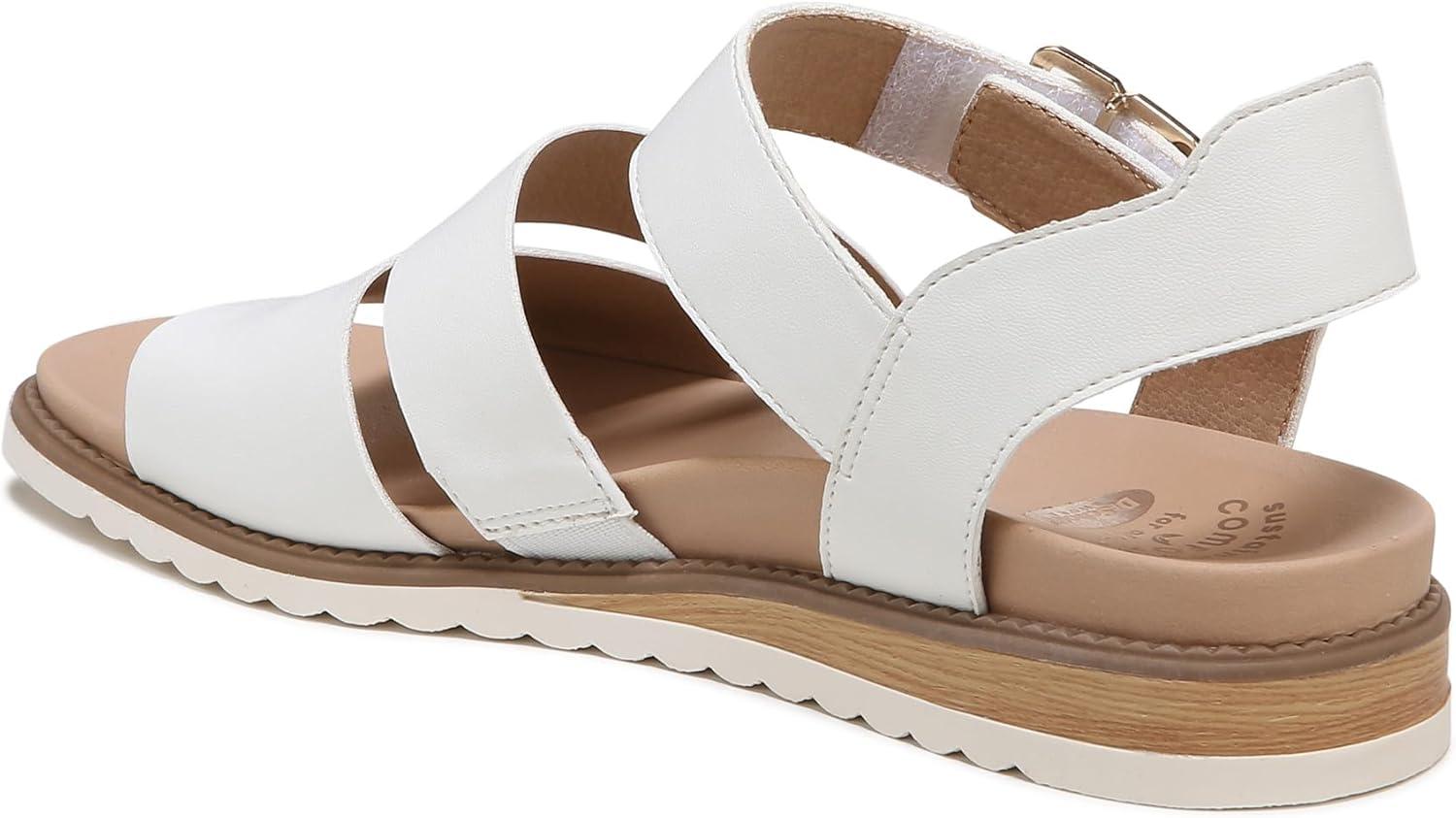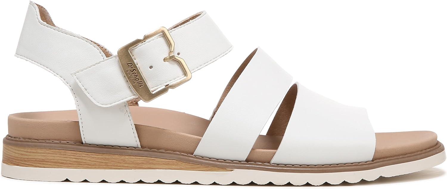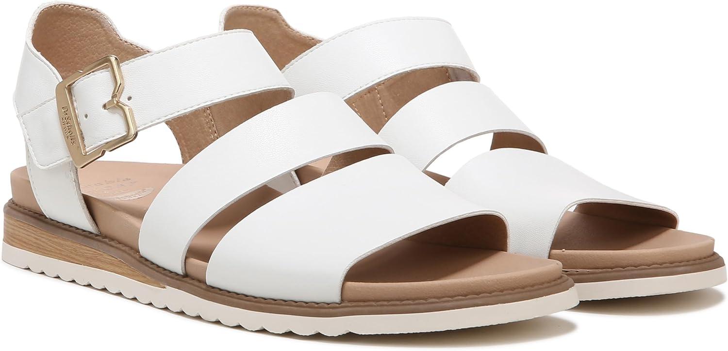 Dr. Scholl’s womens Island Glow Strappy Flat Sandal(White Smooth)