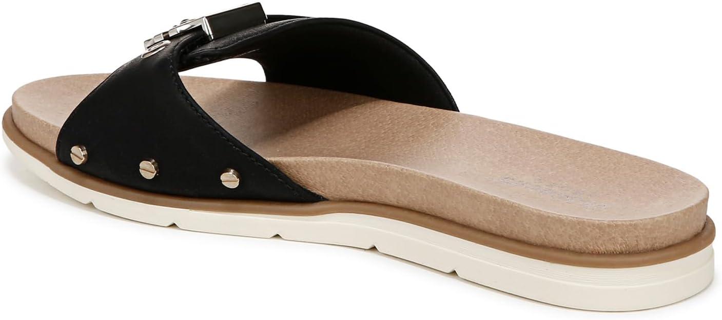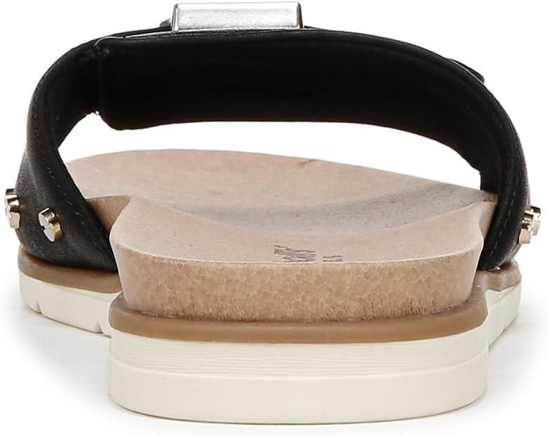 Womens slides with our iconic details and legendary comfort are oh-so-nice. SUSTAINABLY CRAFTED: Fabric lining partially made from recycled plastic bottles. MATERIALS: Fabric or low-chemical faux leather upper. FIT: Slip on fit with adjustable hook-and-loop closure. SUSTAINABLE COMFORT: Anti-odor Insole Technology with cushioning, comfort, & arch support. Insoles partially crafted with 15% cushy, algae-infused BLOOM® foam. MOVEMENT: Lightweight, flexible construction moves with you. FEEL-GOOD FLEX: Ultra-flexible outsoles with extra grip and cushioning. STYLE: Footbed slide sandal adorned with our iconic metallic buckle, side stud accents, open toe, and 1/2 inch sport sole. CONSCIOUSLY PACKAGED: This style is shipped in an environmentally preferred 1-piece box made with primarily recycled materials that can be recycled & soy-based inks. Slide into the season with original style in these womens flat sandals, packed with travel-ready comfort and ease.