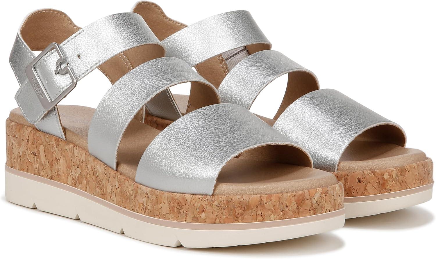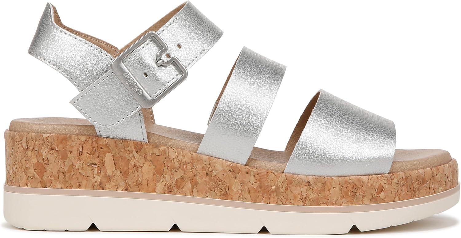 Dr. Scholl’s womens Once Twice(Silver Metallic/Cork)