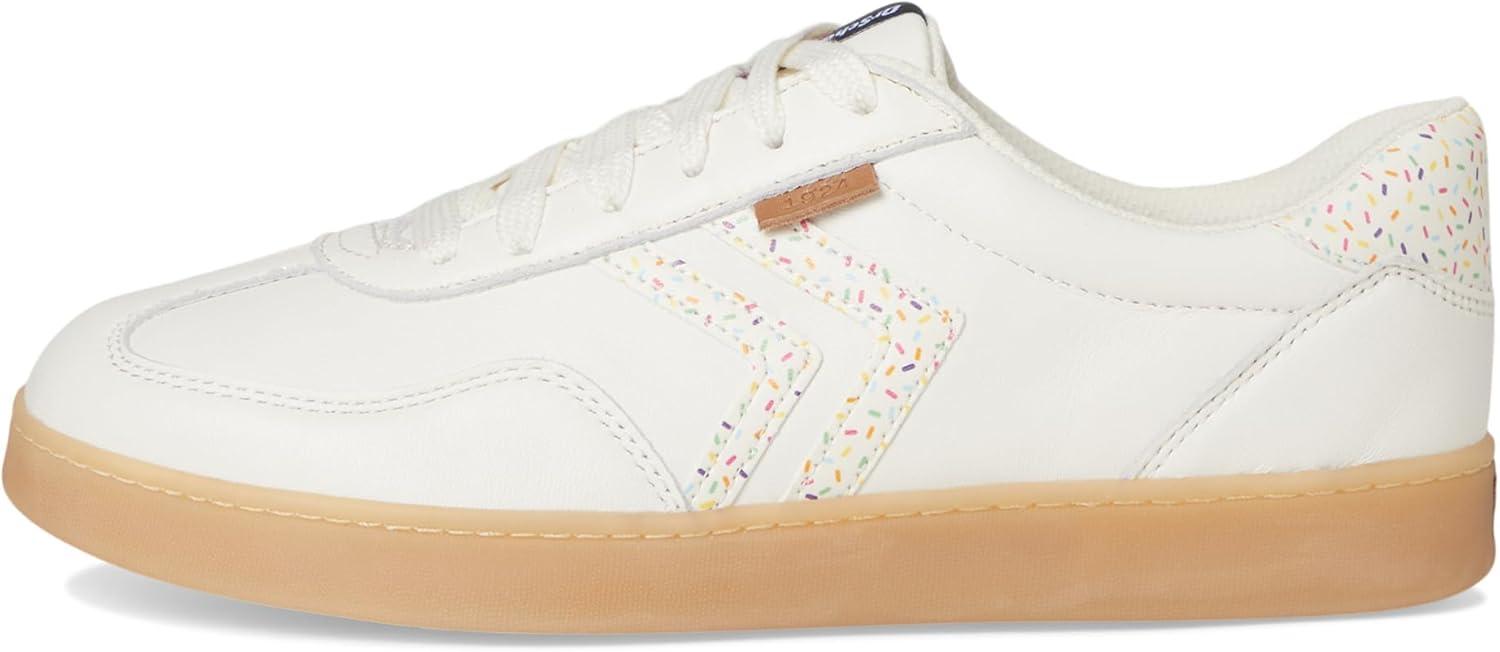 Low profile sneakers for women with high-impact details. SUSTAINABLY CRAFTED: Fabric lining and topcloth partially made from recycled plastic bottles; partially recycled toe box and heel counter. MATERIALS: Suede and leather upper responsibly sourced through Leather Working Group-certified tanneries. FIT: Lace up closure for secure fit. SUSTAINABLE COMFORT: Anti-odor Insole Technology with anatomical cushioning, comfort, & arch support that uses 15% cushy plant-based BLOOM® foam insole. MOVEMENT: Lightweight, flexible construction moves with you. STYLE: Retro-inspired womens sneakers with round toe, padded collar, stitch details, chevron accents, and 1 inch rubber gum sole. CONSCIOUSLY PACKAGED: This style is shipped in an environmentally preferred 1-piece box made with primarily recycled materials that can be recycled & soy-based inks. A pop color palette, trending gum sole, and our revolutionary comfort create womens walking shoes for your daily rotation.