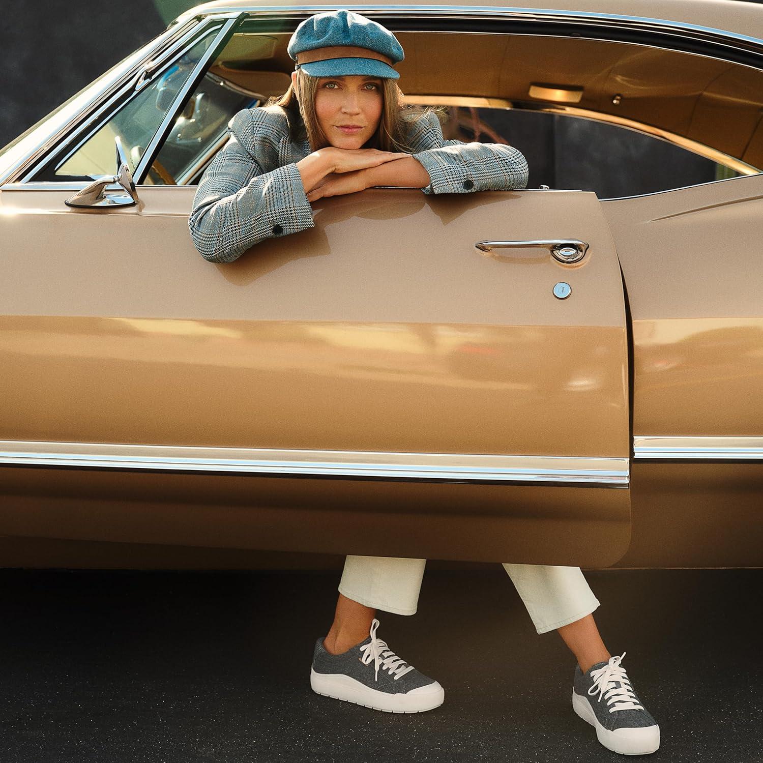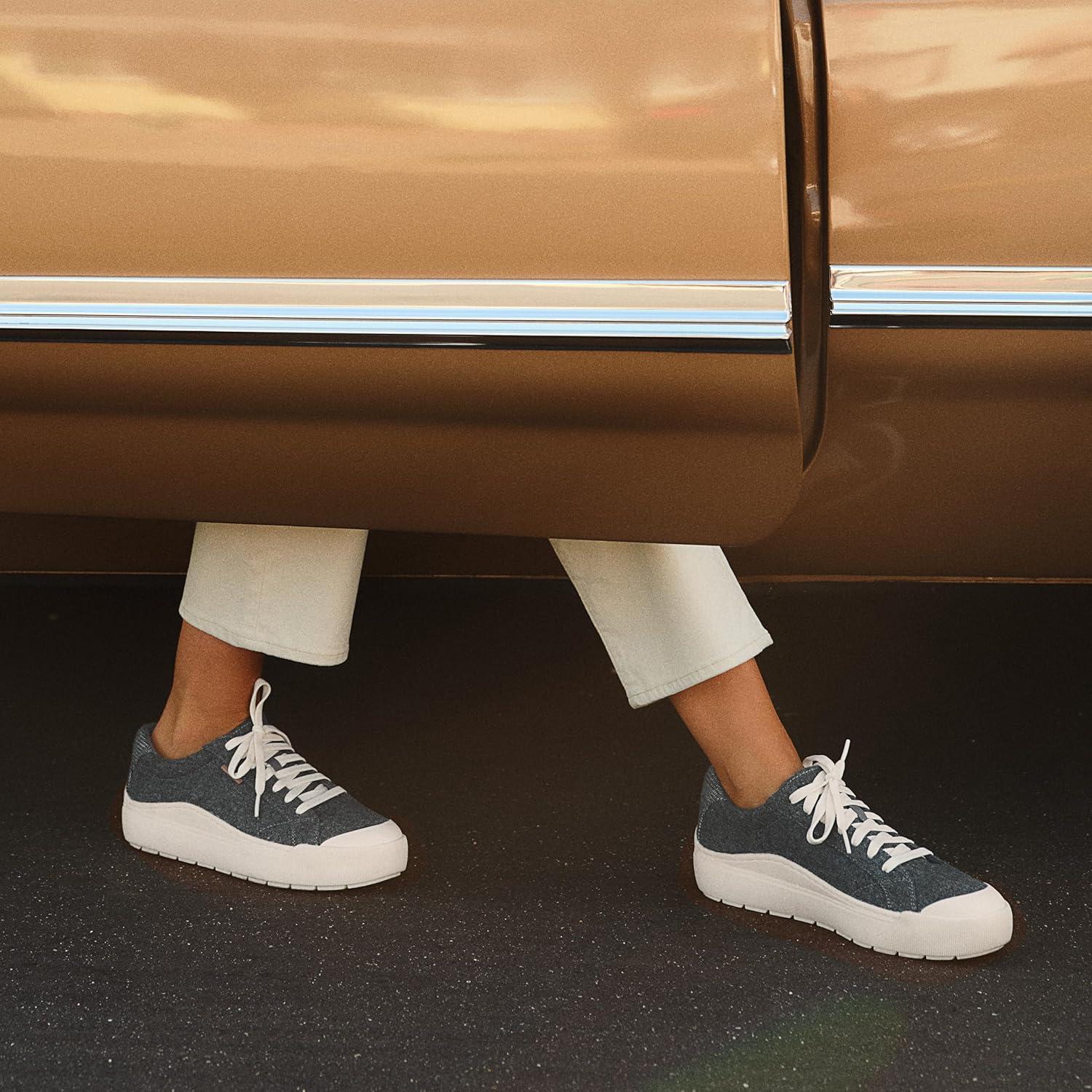 Retro-inspired platform womens sneakers with extra lift. SUSTAINABLY CRAFTED: Fabric lining, footbed and topcloth partially made from recycled plastic bottles; partially recycled toe box and heel counter. MATERIALS: Faux leather, canvas, or fabric upper, or microfiber upper made from partially recycled plastic bottles. EASY CLEAN: Pre-treated with Easy Clean Repellant, a topical spray applied to the sidewall of the shoe only, to keep the sides of the shoe’s sole cleaner longer. Individual results may vary. FEEL-GOOD FLEX: Ultra-flexible outsoles with extra grip and cushioning. FIT: Lace up front with padded heel for a secure fit. SUSTAINABLE COMFORT: Anti-microbial, anti-odor Insole Technology with cushioning, comfort, & arch support. Insoles partially crafted with 15% cushy, algae-infused BLOOM® foam. MOVEMENT: Lightweight, flexible construction moves with you. STYLE: Womens lace up tennis shoes with retro-inspired toe cap and sporty white sole. As seen (and loved) on TikTok: THE most comfortable walking shoes for travel. And everything else.