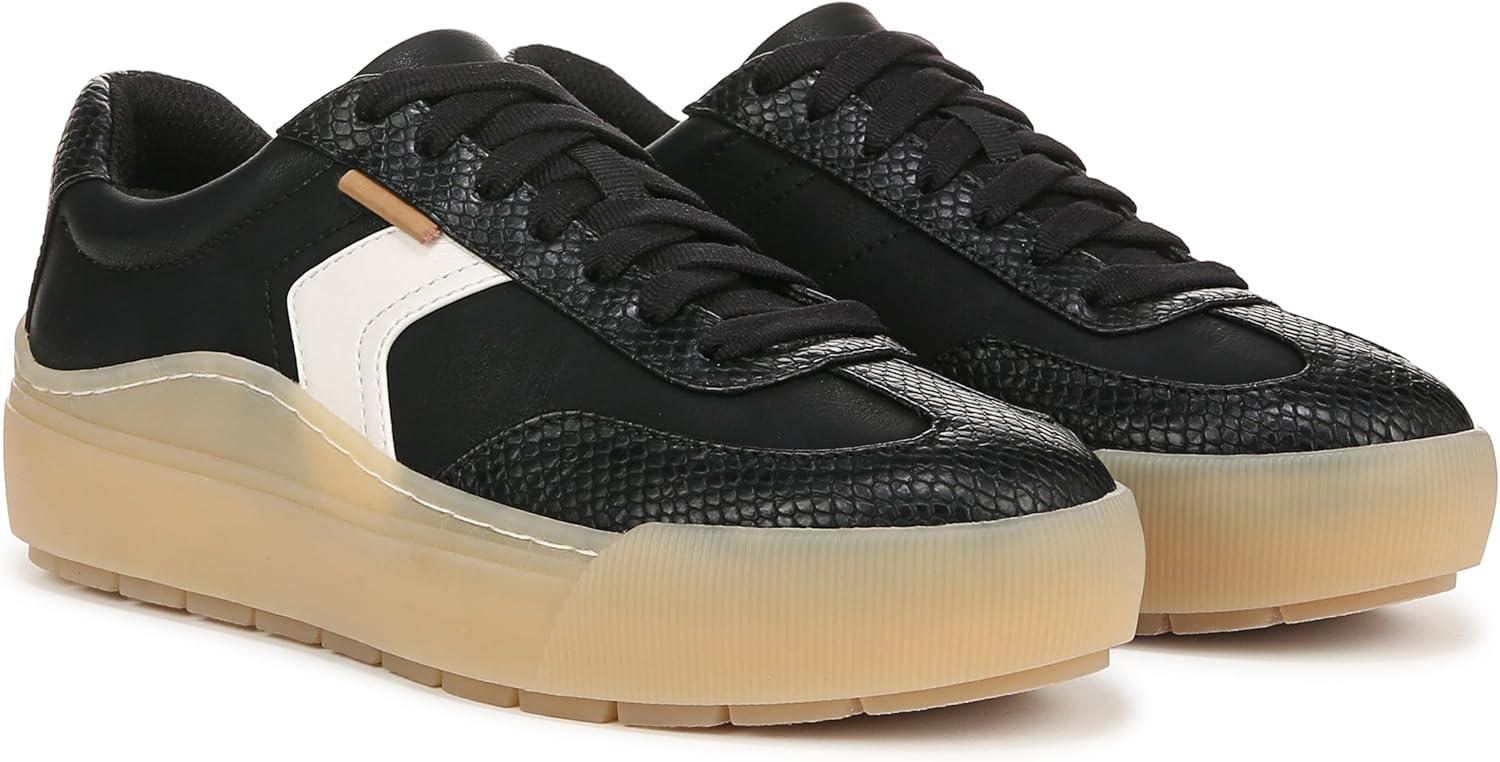 A new update to our TikTok viral sneaker to add to your lineup. SUSTAINABLY CRAFTED: Fabric lining and topcloth partially made from recycled plastic bottles; partially recycled toe box and heel counter. MATERIALS: Partially recycled nylon upper, low chemical faux leather upper, or microfiber upper partially made from recycled plastic bottles. EASY CLEAN: Time Off Win styles with white outsoles are pre-treated with Easy Clean Repellant, a topical spray applied to the sidewall of the shoe only, to keep the sides of the shoe’s sole cleaner longer. Care instructions: use water (only) on a household cloth to wipe sidewall of shoe. Individual results may vary. FIT: Lace up front for secure fit. SUSTAINABLE COMFORT: Anti-microbial, anti-odor Insole Technology with anatomical cushioning, comfort, & arch support that uses 15% cushy plant-based BLOOM® foam insole. MOVEMENT: Lightweight, flexible construction moves with you. STYLE: Casual womens tennis shoes with retro-inspired stitch detailing, chevron accent, flexible 2 inch sport sole or gum sole and 1 1/3 inch platform. CONSCIOUSLY PACKAGED: This style is shipped in an environmentally preferred 1-piece box made with primarily recycled materials that can be recycled & soy-based inks. Retro stitching and viral comfort for the win. A fashion forward take on TikTok’s favorite travel shoes with first-class feels.