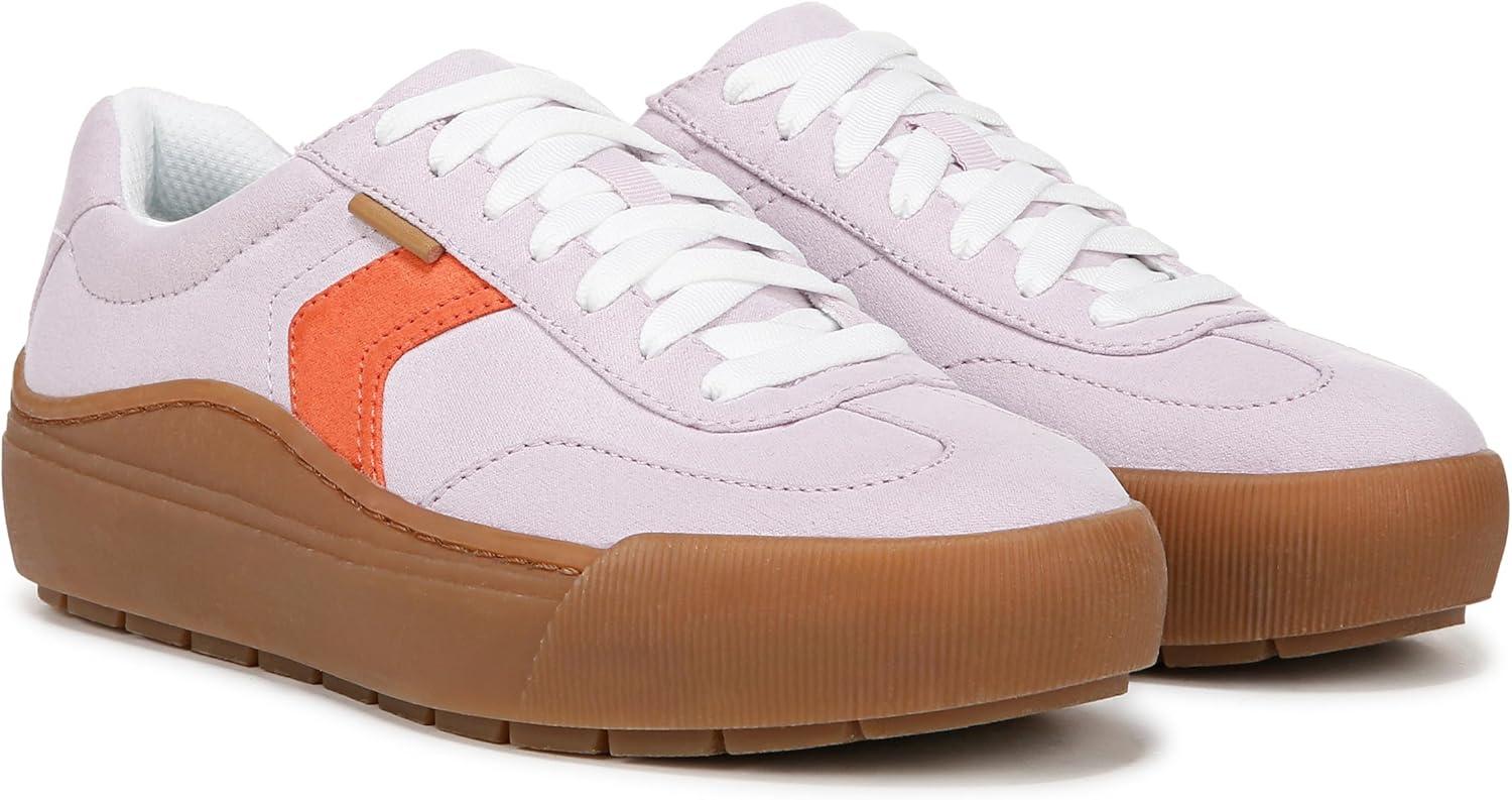 A new update to our TikTok viral sneaker to add to your lineup. SUSTAINABLY CRAFTED: Fabric lining and topcloth partially made from recycled plastic bottles; partially recycled toe box and heel counter. MATERIALS: Partially recycled nylon upper, low chemical faux leather upper, or microfiber upper partially made from recycled plastic bottles. EASY CLEAN: Time Off Win styles with white outsoles are pre-treated with Easy Clean Repellant, a topical spray applied to the sidewall of the shoe only, to keep the sides of the shoe’s sole cleaner longer. Care instructions: use water (only) on a household cloth to wipe sidewall of shoe. Individual results may vary. FIT: Lace up front for secure fit. SUSTAINABLE COMFORT: Anti-microbial, anti-odor Insole Technology with anatomical cushioning, comfort, & arch support that uses 15% cushy plant-based BLOOM® foam insole. MOVEMENT: Lightweight, flexible construction moves with you. STYLE: Casual womens tennis shoes with retro-inspired stitch detailing, chevron accent, flexible 2 inch sport sole or gum sole and 1 1/3 inch platform. CONSCIOUSLY PACKAGED: This style is shipped in an environmentally preferred 1-piece box made with primarily recycled materials that can be recycled & soy-based inks. Retro stitching and viral comfort for the win. A fashion forward take on TikTok’s favorite travel shoes with first-class feels.