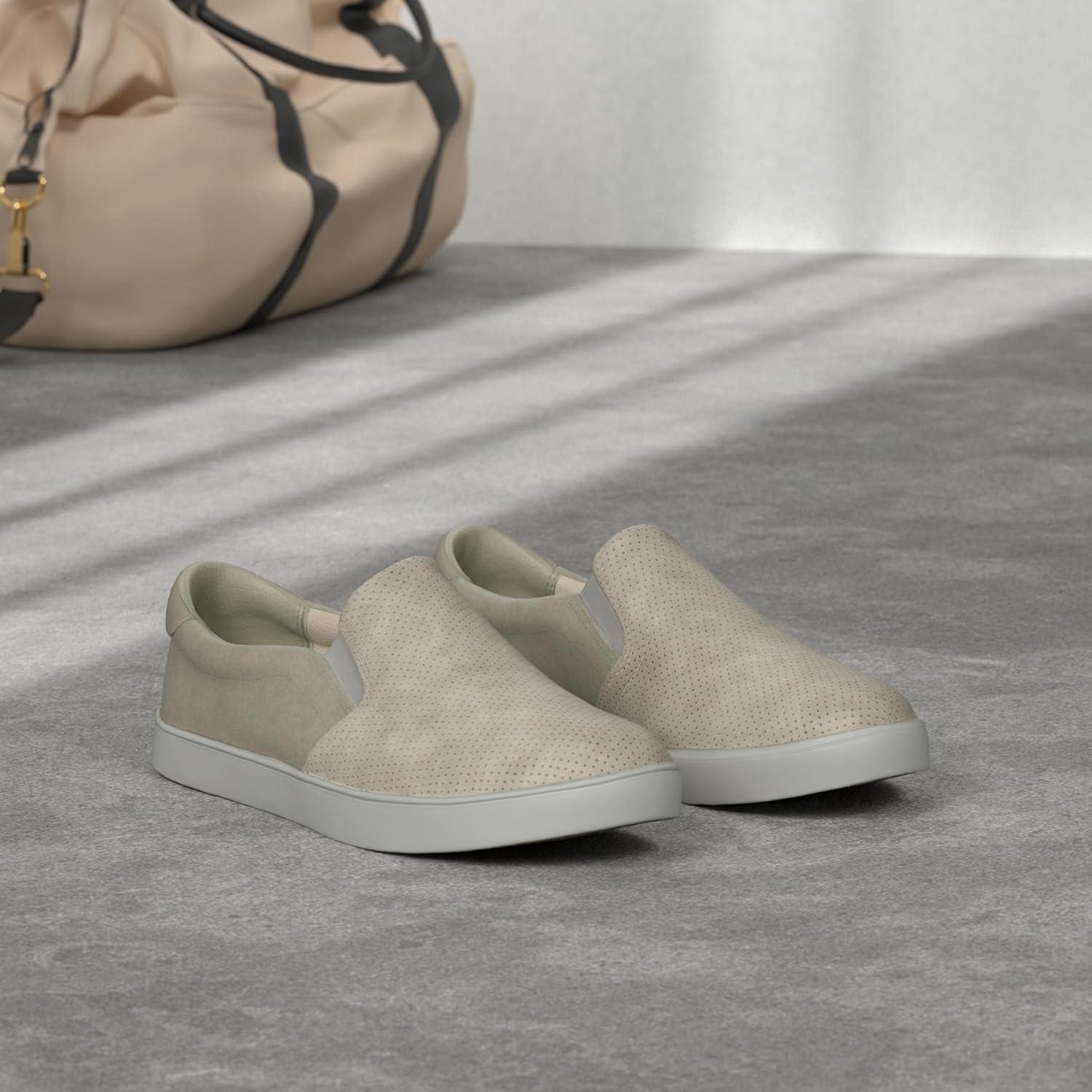 The style of the season. you'll love the look of this sporty slip on with simple lines and a neutral palette. this is the shoe you can really live in! memory foam cool fit insole. super soft lining at collar. rubber sidewalls and sole. material mixing adds interest and contrast.