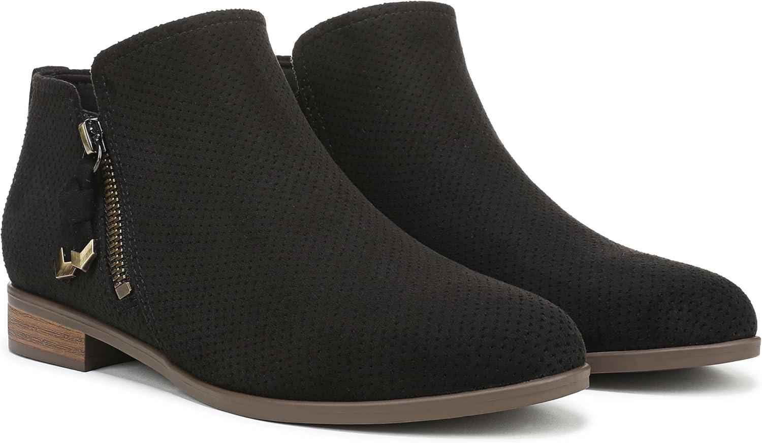 Casual boots for women with chic details and our legendary comfort. SUSTAINABLY CRAFTED: Fabric lining and topcloth partially made from recycled plastic bottles. MATERIALS: Microfiber upper partially made from recycled plastic bottles. FIT: Outside zip closure and inside stretch gore for easy on/off. SUSTAINABLE COMFORT: Anti-odor Insole Technology with cushioning, comfort, & arch support. Insoles partially crafted with 15% cushy, algae-infused BLOOM® foam. MOVEMENT: Lightweight, flexible construction moves with you. STYLE: Ankle booties with metallic zipper pull detail, back pull tab, and 1 inch TPR with faux cru stacked heel. CONSCIOUSLY PACKAGED: This style is shipped in an environmentally preferred 1-piece box made with primarily recycled materials that can be recycled & soy-based inks. Booties for every season. Comfy, versatile, and easy to wear with all your fave ‘fits.
